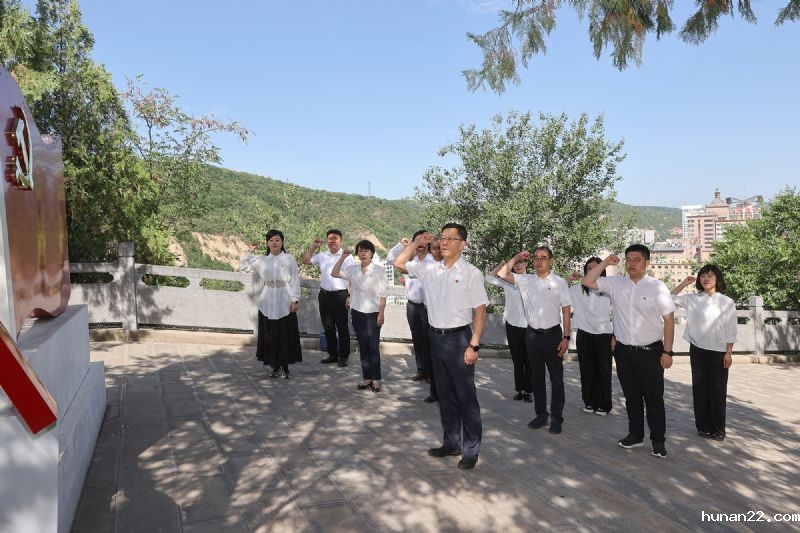 站在宝塔山上,俯瞰延安整个城区,学员们深刻感受到宝塔山将历史文物和革命遗址融为一体的文化底蕴;眺望陕甘宁边区政府旧址,大家深切体会到延安这片土地上蕴藏和流淌着一种弥足珍贵的精神财富。宝塔山上,党委书记赵恒心带领全体共产党员,面向鲜红的党旗,高高举起右拳,重温入党誓词,追忆入党初心,喊出“对党忠诚、永不叛党”的铮铮誓言。