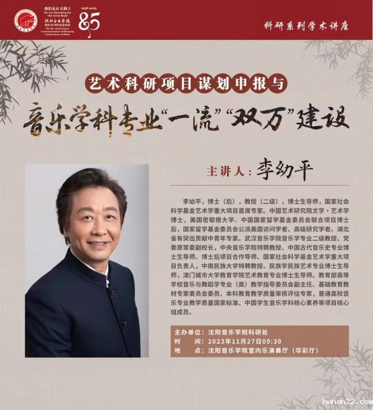 学术讲座:《艺术科研项目谋划申报与音乐学科专业“一流”“双万”建设》