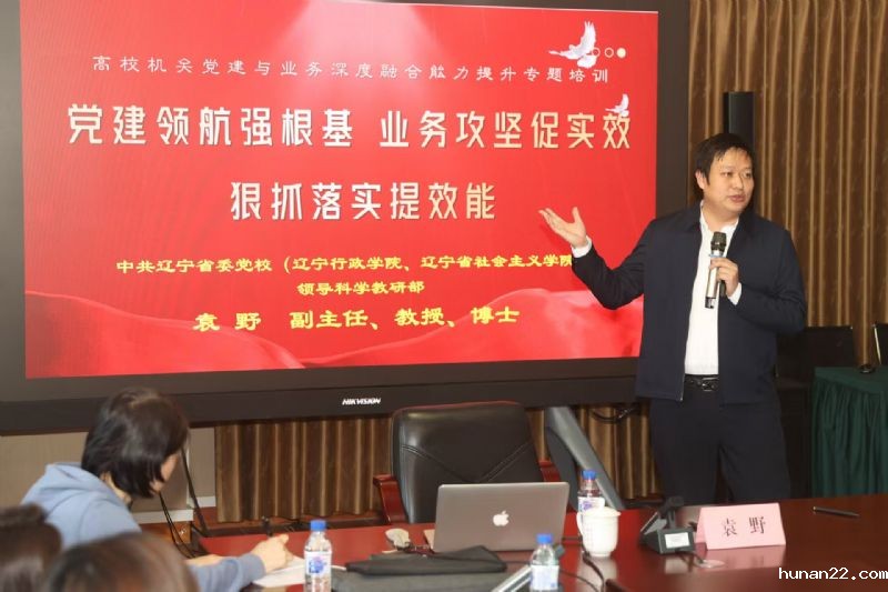 为深入贯彻党的二十大和二十届二中、三中全会精神,全面贯彻习近平总书记关于教育的重要论述,落实学院《基层党建高质量发展三年行动实施方案(2025—2027 年)》关于实施赋能聚力行动的要求,推动机关党建与业务工作深度融合,425日,机关党委邀请中共辽宁省委党校(辽宁行政学院、辽宁省社会主义学院)领导科学教研部副主任袁野教授作《党建领航强根基 业务攻坚促实效 狠抓落实提效能——高校机关党建与业务深度融合能力提升》专题培训。机关党委所辖党支部书记、党务工作者和部分院系党支部书记参加培训。培训由机关党委书记邹天伦主持。