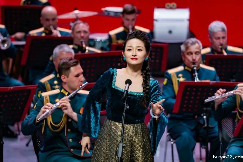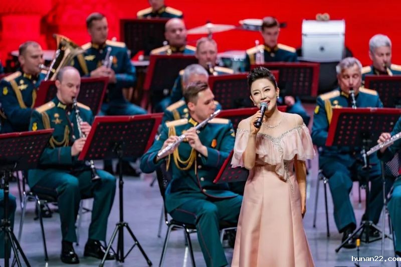 音乐会在俄罗斯功勋艺术家季莫费·马亚金少将指挥的柴可夫斯基《第四交响曲》终章的磅礴声浪中启幕。这部“命运抗争”的史诗,令观众仿佛置身硝烟弥漫的战场。歌曲《芦花》,演唱者以空灵的嗓音勾勒江南水韵,与俄罗斯民歌《毡靴》的“冬日幽默”形成诗意对话。维吾尔民歌《一杯美酒》热情奔放;巴拉莱卡琴奏响的《节日庆典》再现了斯拉夫民间婚礼的狂欢场景;歌曲《在希望的田野上》饱含对美好生活的赞美;歌曲《春天的芭蕾》《俄罗斯上空飞行》,演唱者以高超的演唱技巧引发观众赞叹;《五月华尔兹》经典的旋律将观众回到1945年那个鲜花漫天的胜利之春,《莫斯科郊外的晚上》《喀秋莎》熟悉的旋律则将全场气氛推向高潮,观众长时间起立鼓掌,致敬这场跨越80载的音乐对话。